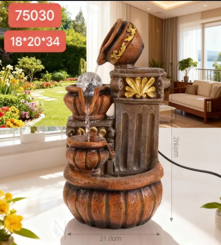 精美的工艺设计不仅增添优雅气息,还伴随流水轻响营造舒缓氛围。无论置于室内或室外,这款喷泉都能成为空间的视觉焦点,提升环境美感。
