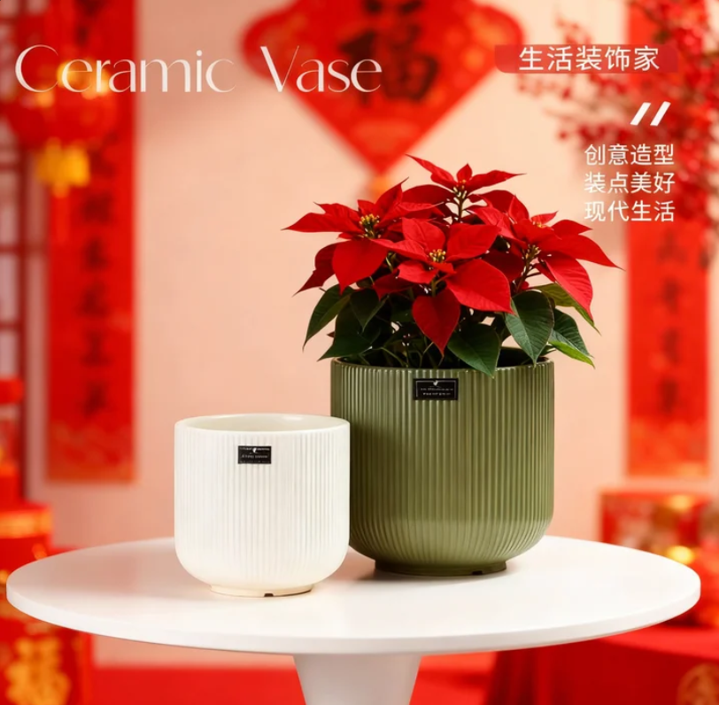 用我们优雅陶瓷花盆系列中的这款陶瓷花盆,为您的花园或室内空间增添格调。